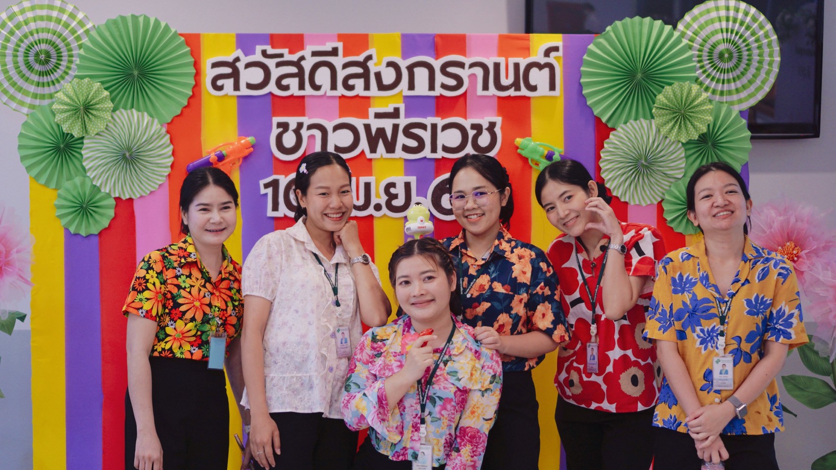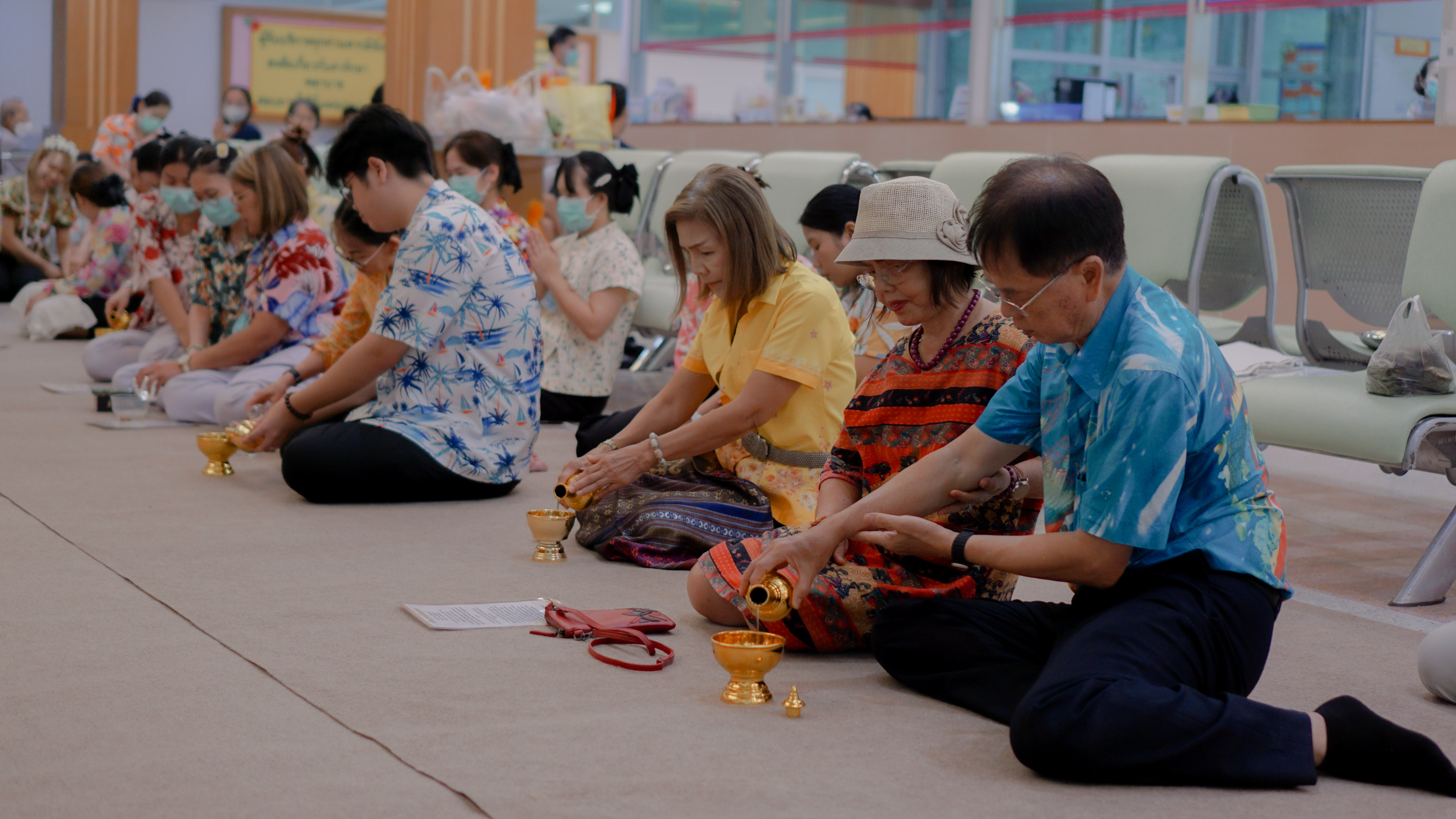 ภาพกิจกรรมทำบุญตักบาตร ข้าวสาร อาหารแห้งและสรงน้ำพระ รดน้ำดำหัวผู้ใหญ่ ณ ลานชั้น 2 บริเวณหน้าห้องยา โรงพยาบาลพีรเวช วันที่ 10 เมษายน 2569